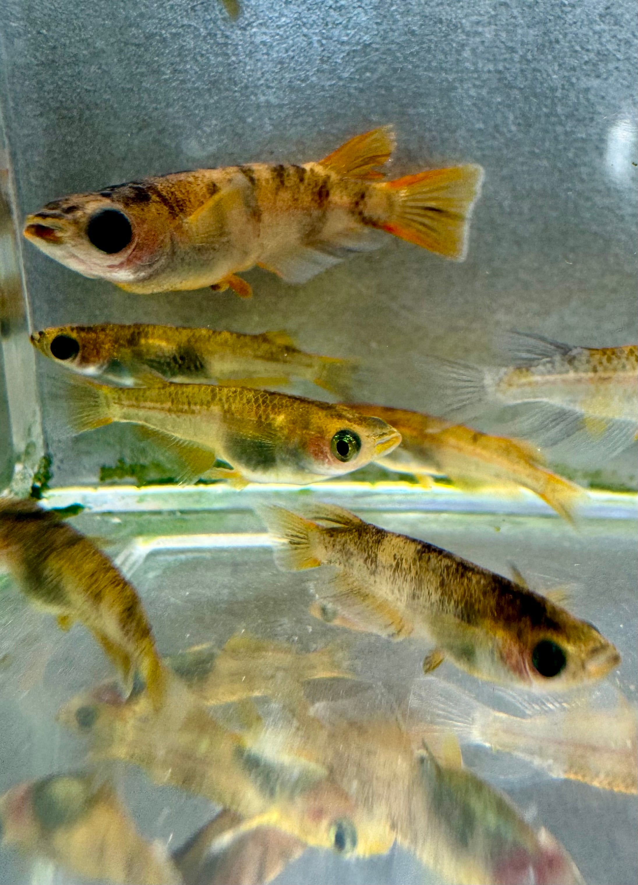 和墨から派生した黄体色の斑模様メダカです。