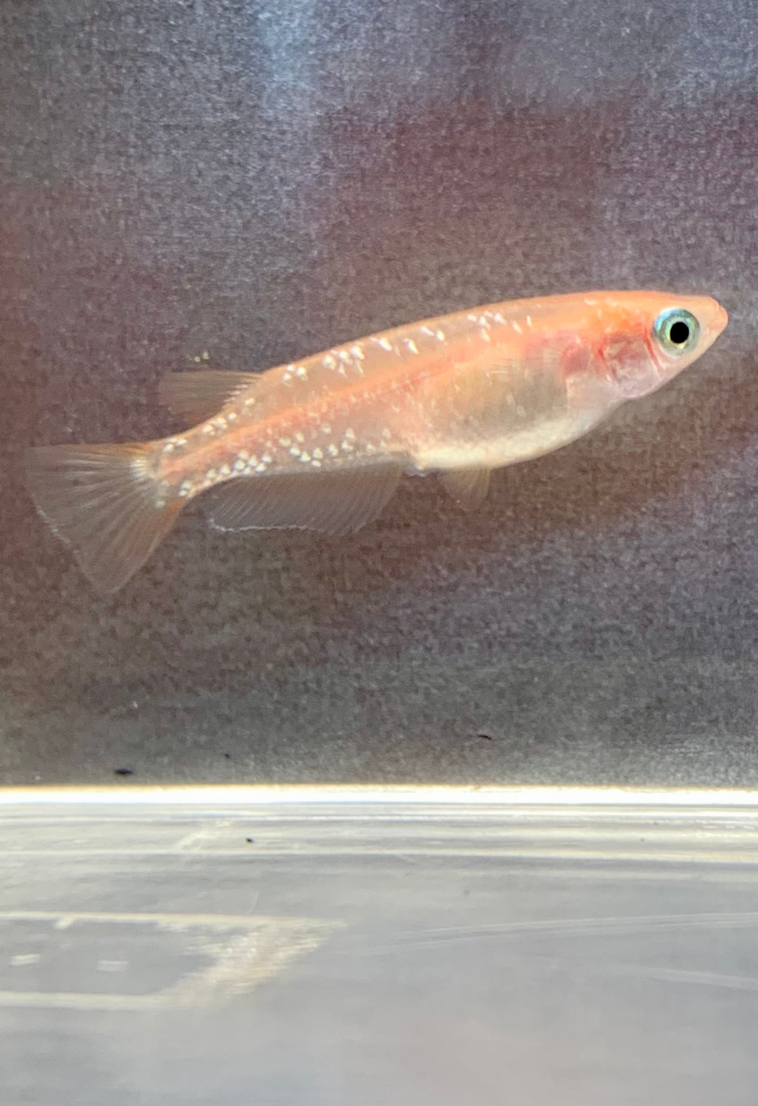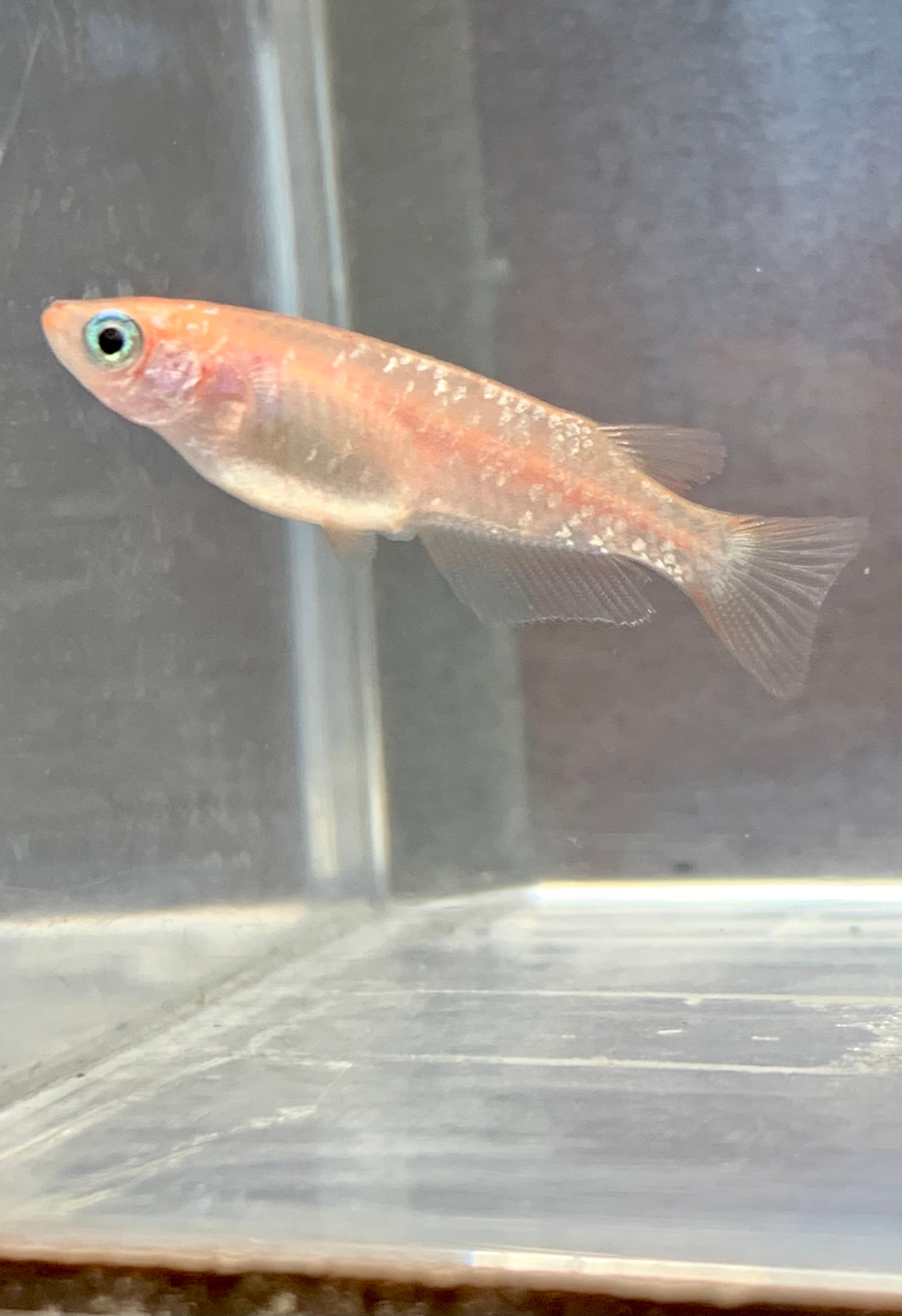 優しいピンクの体色に美しいラメが煌めくメダカです。
