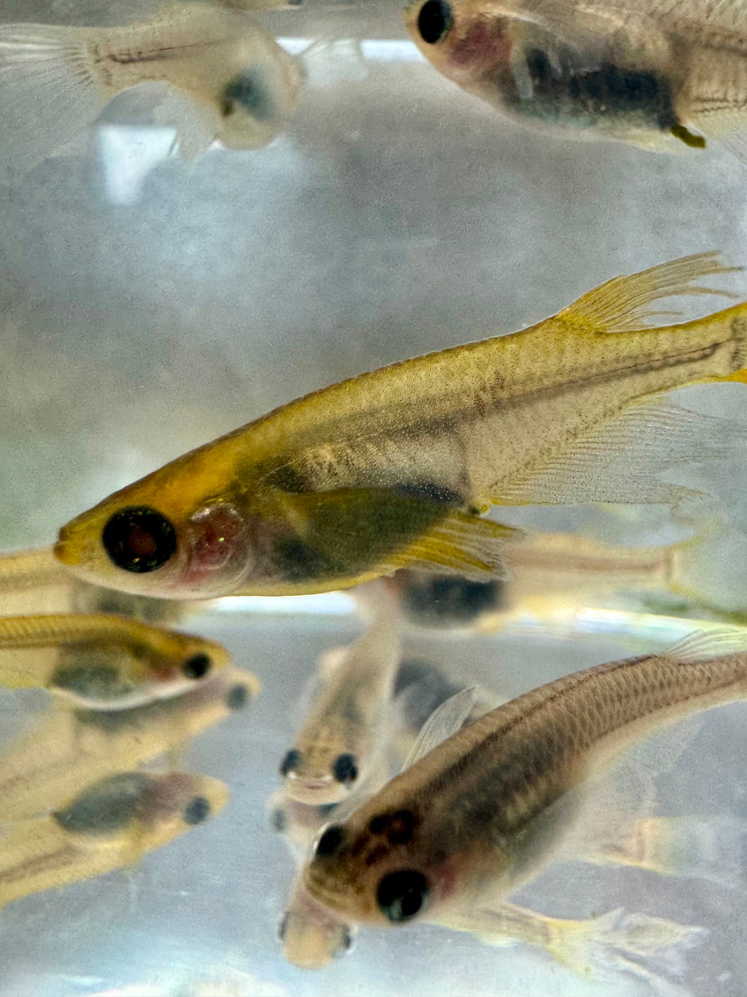 優雅なヒレ長(スワロー)のヒレ変化を持つパンダメダカです。