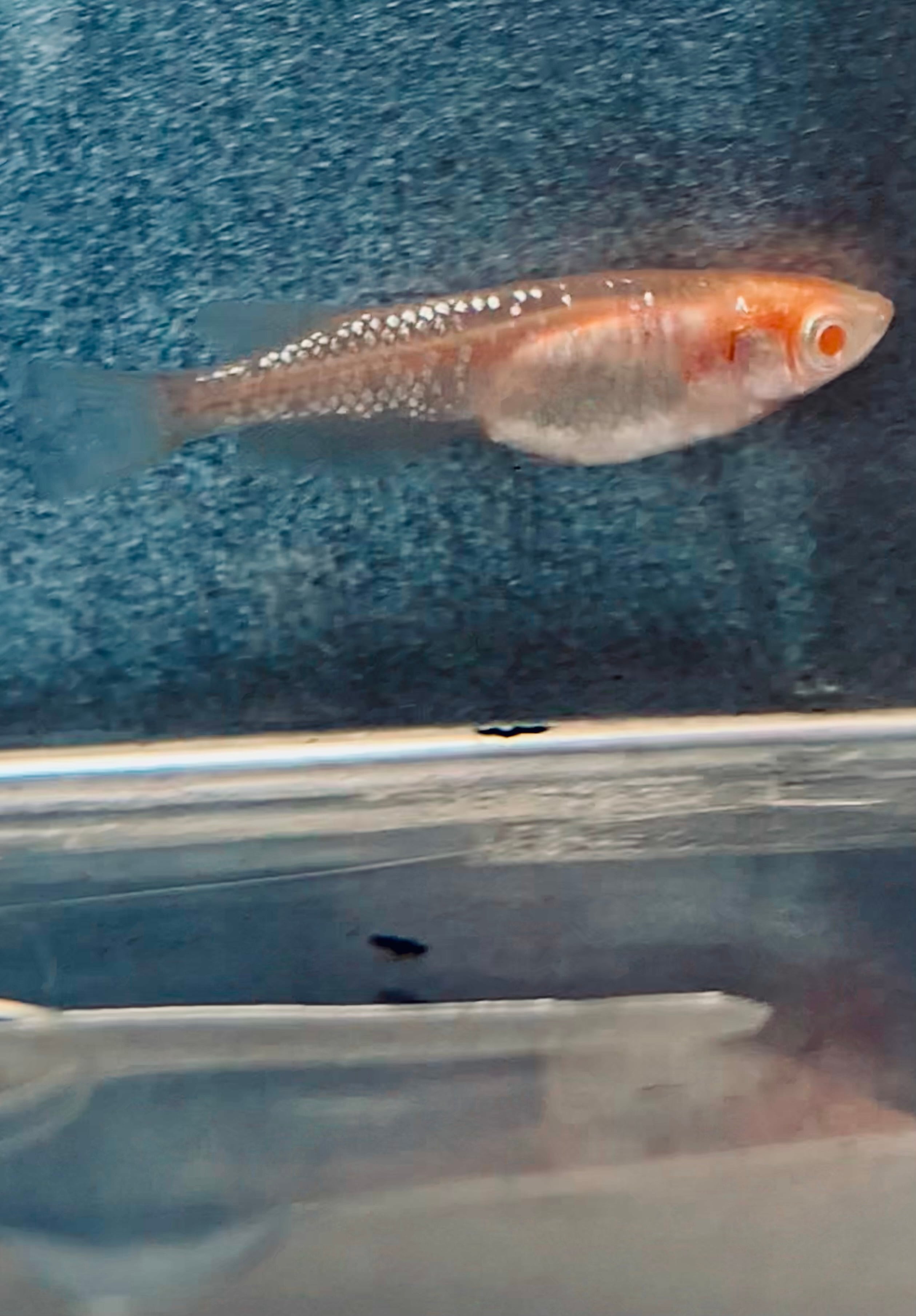 透明感のある白体色に儚い赤目が美しく、全身に散りばめられたラメが煌めきます。