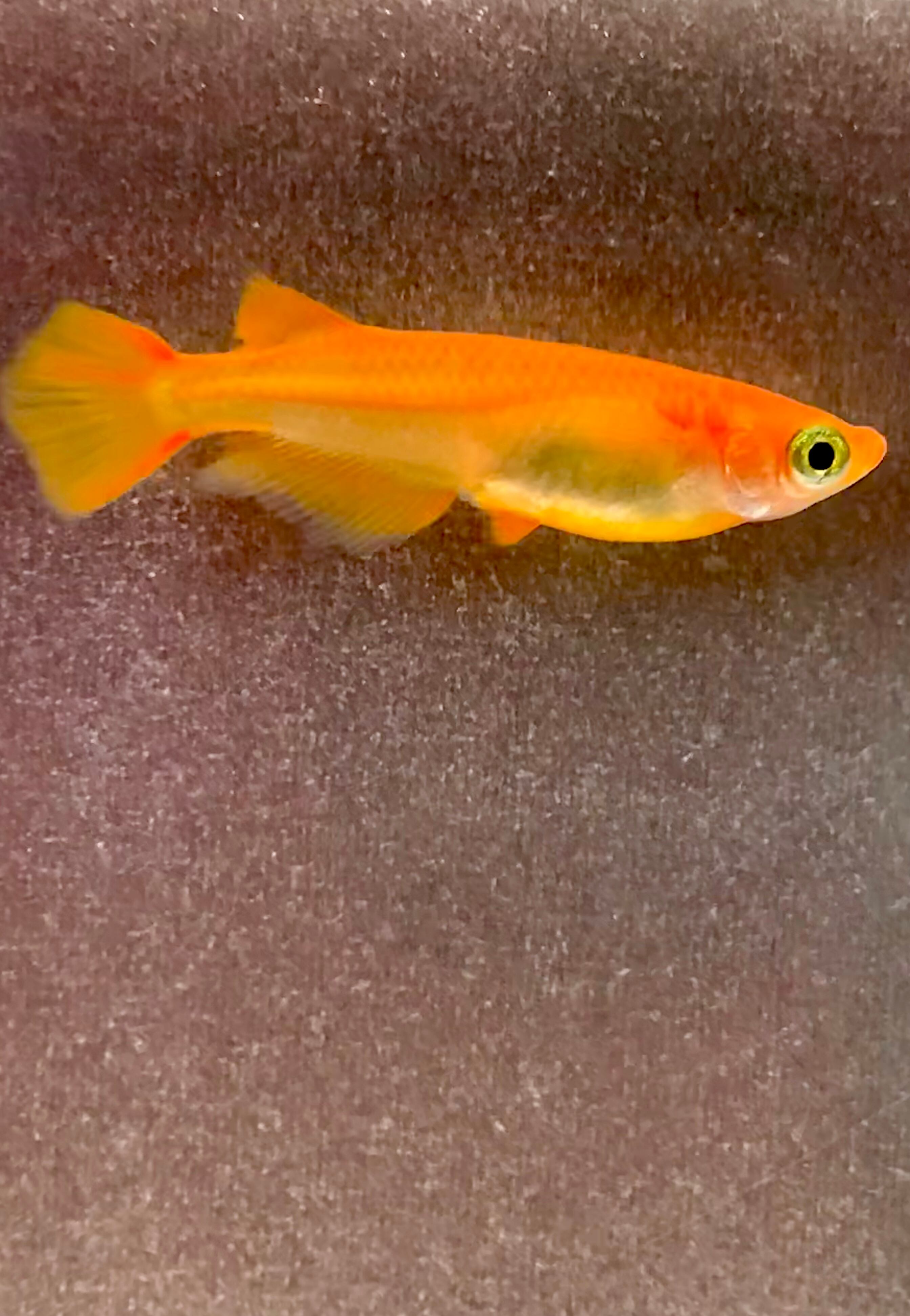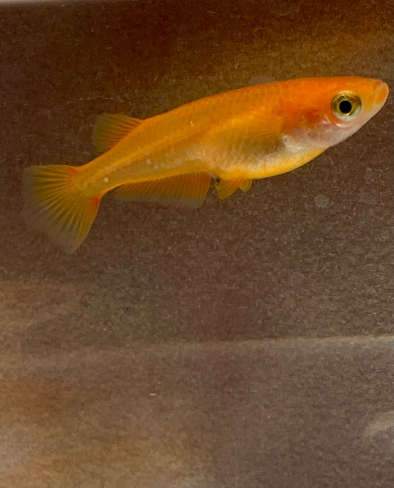 新体型(普通種体形の尾ビレだけがヒカリ体形のひし形の尾ビレに変化したメダカ)