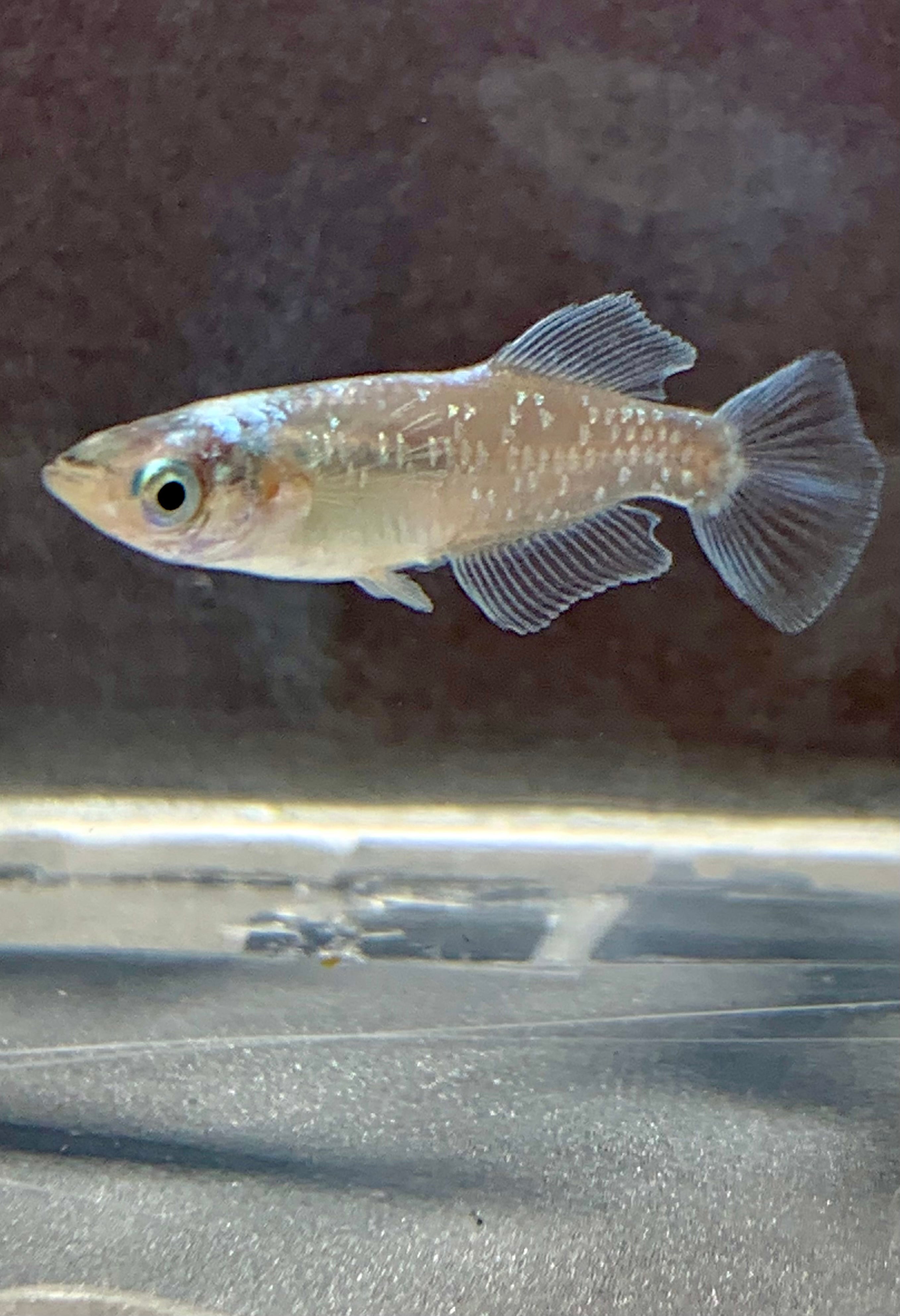 青幹之の輝くボディーにラメが乗り、ヒレには青輝が乗る、美しくてスマートなヒカリ体形のメダカです。