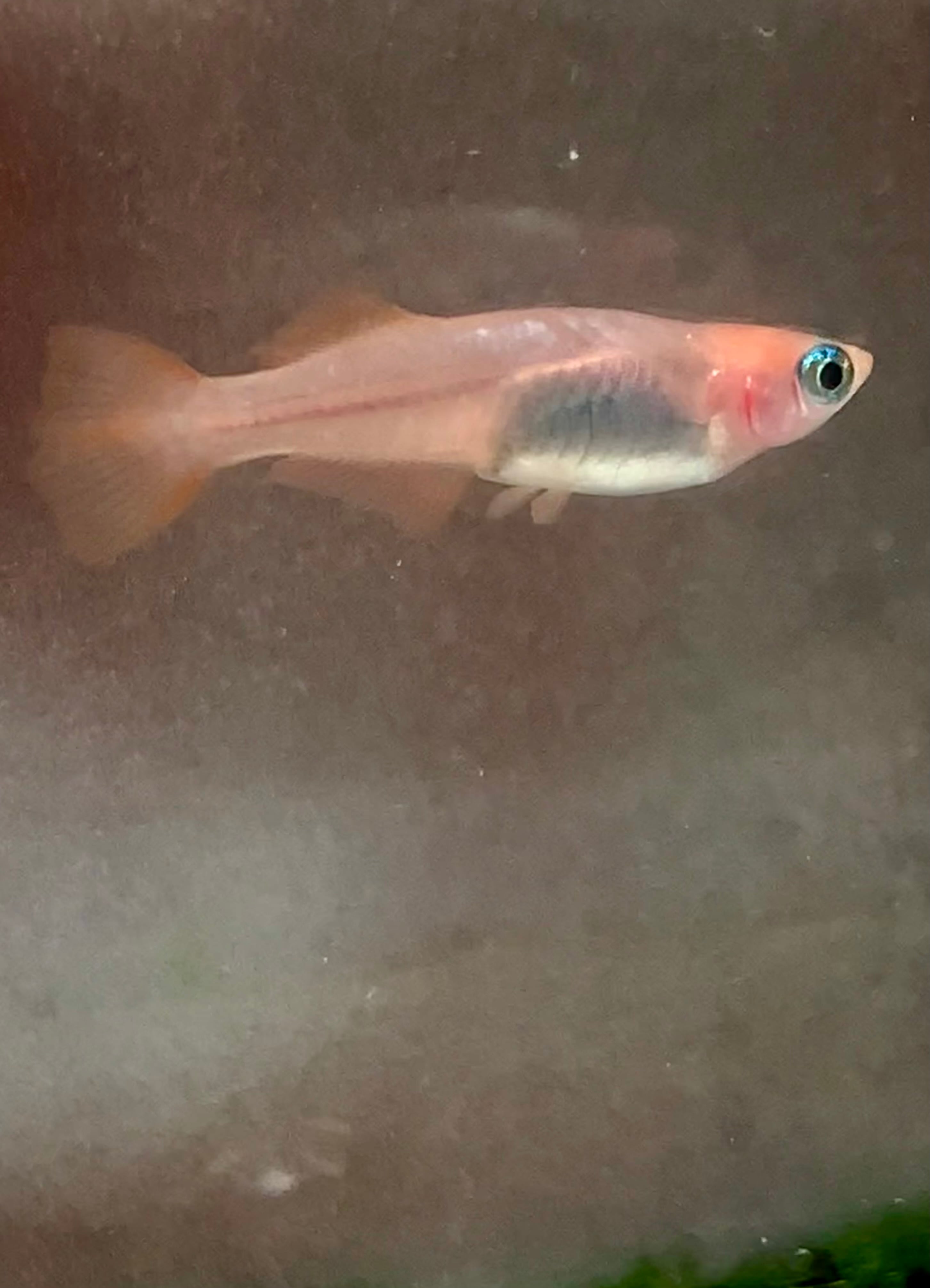 オーロラ系のメダカで、全身を包む透明感があり、独特の存在感を放ちます。
