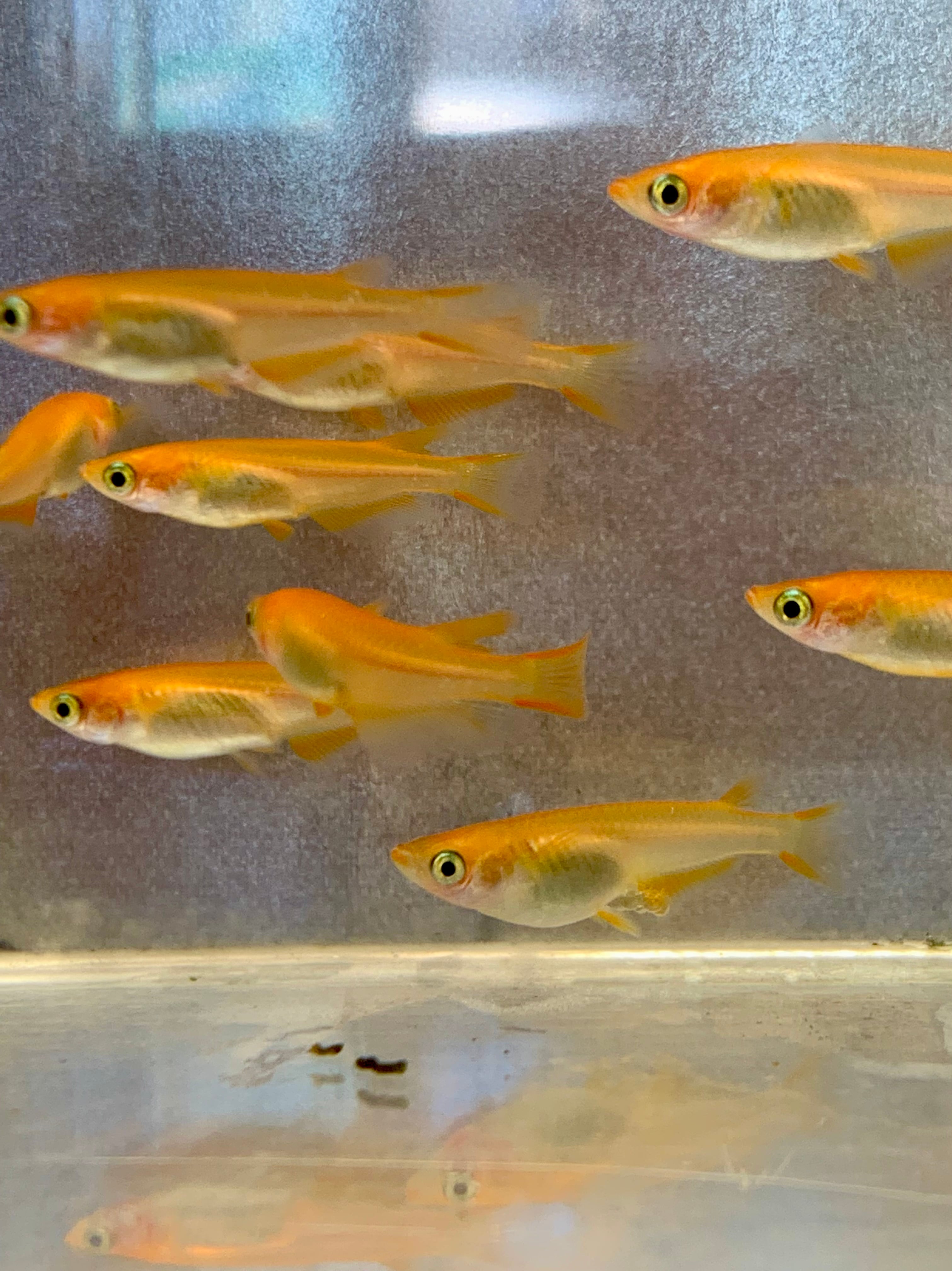 体色はオレンジで見た目は普通のオレンジメダカです。