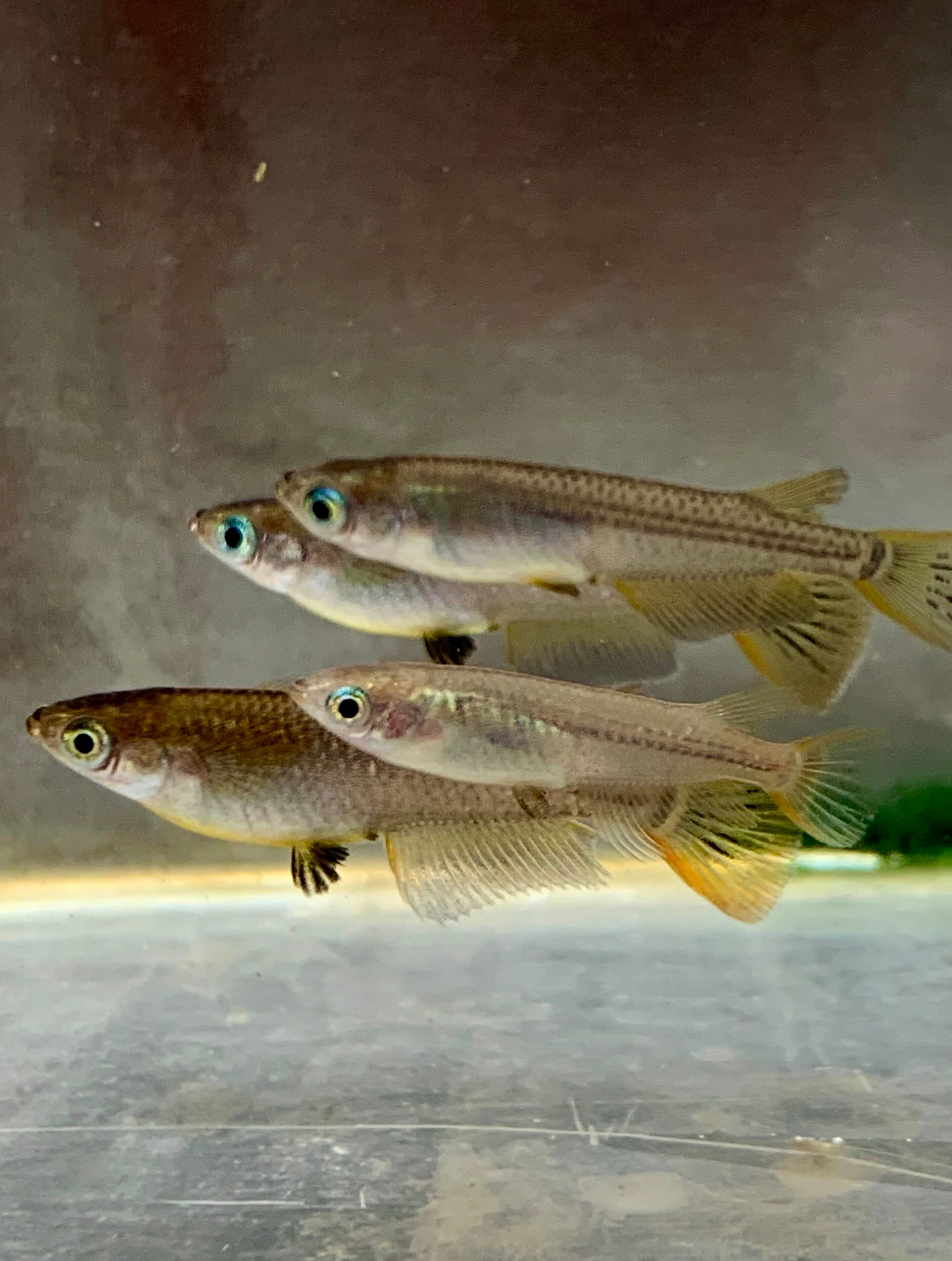 ヒレ長(スワロー)スモールアイ同士の交配から生まれてきたヒレ長(スワロー)にもスモールアイにもならなかった普通体形のメダカです。