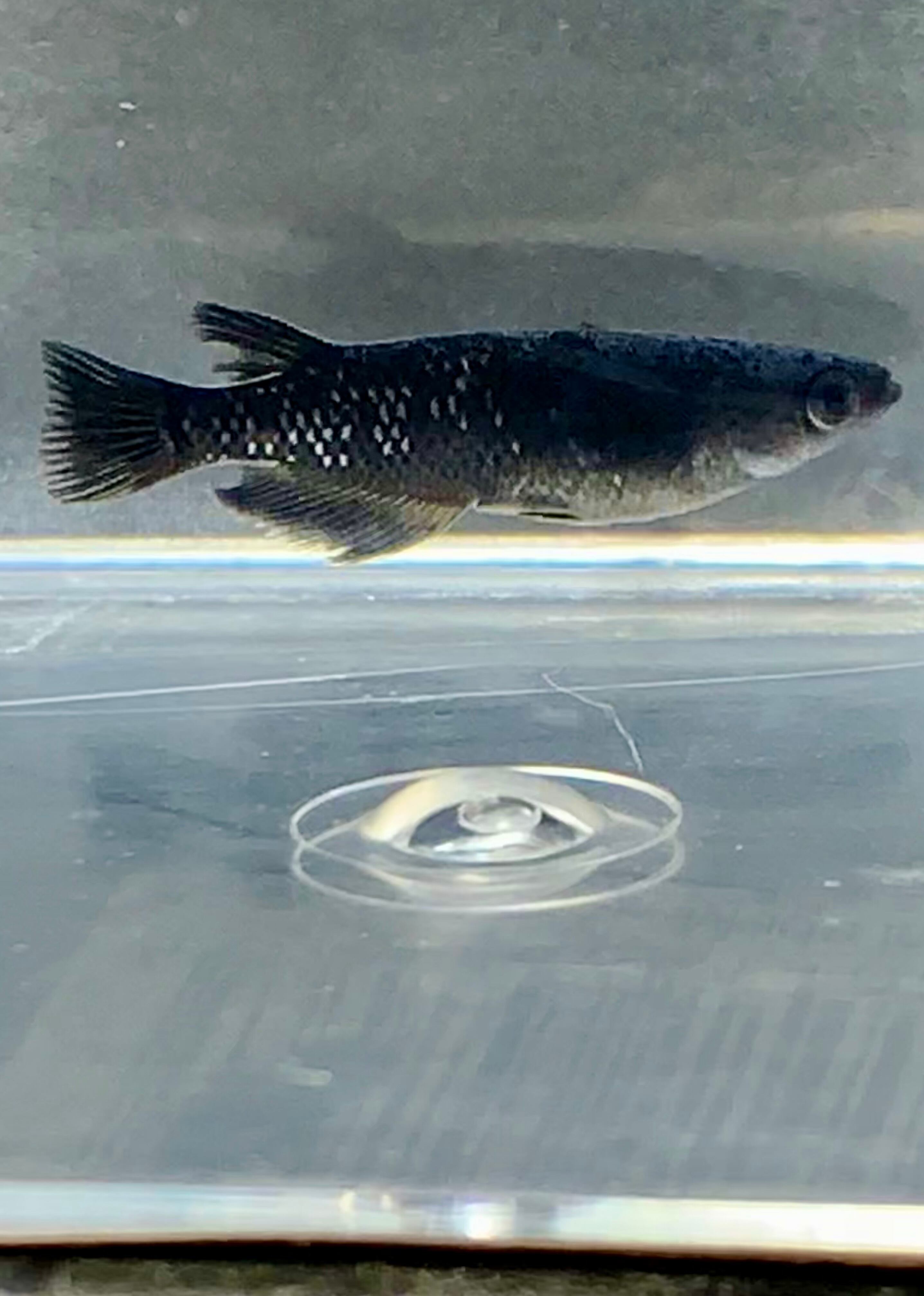 オロチの漆黒ボディーにラメが乗ったメダカです。